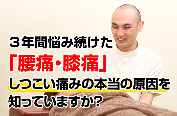 同じような腰・膝の痛みでも1人1人原因は違いますが、浜野整骨院では諦めずに対処していきます!