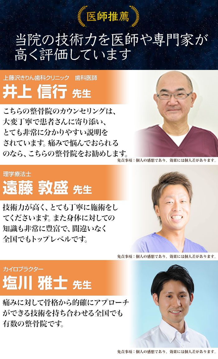特定された原因に対してお一人お一人に合わせたオーダーメードの施術をさせて頂きます。
