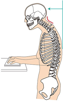 猫背のように姿勢が崩れると、全身の骨の歪みが体のバランスを大きく崩し、そのバランスを整えようと、体が緊張してしまいます。さらに、頭の位置が前の方にずれていきます。