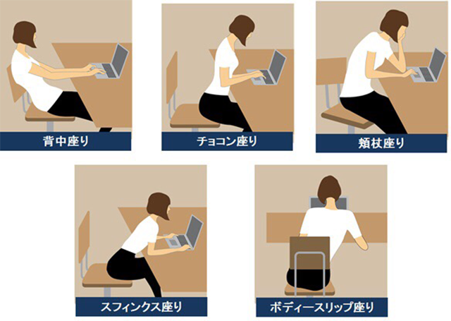それは「姿勢の悪さ」です。姿勢の悪い人が100%と腰の痛みを抱えているとは言えませんが、腰痛を抱えている人の多くが姿勢が悪く、浜野整骨院では腰の痛みの1つの原因として「悪い姿勢」と考えています。