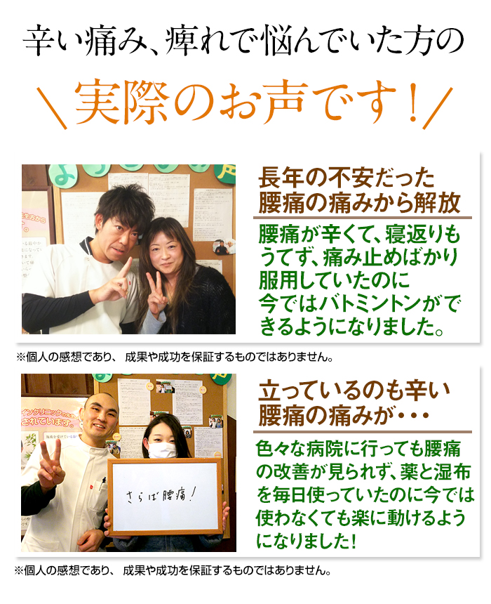 中学生の時から、慢性的な腰痛に悩んでいました。