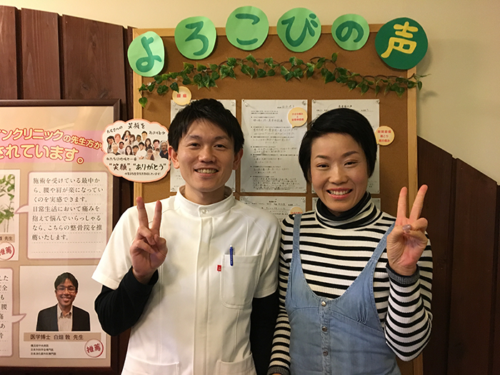 施術だけでなく、予防や体のメンテナンスをして頂けるので良い状態を保つこととが出来流と思います。まだ続く痛みを抱えて苦しんでいる方は少しでも早く来院されることをお勧めします。